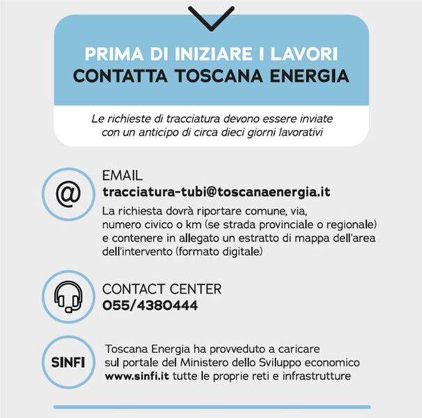 Se hai bisogno di effettuare un lavoro nel sottosuolo che potrebbe interferire con il servizio di distribuzione gas, puoi inserire una richiesta attraverso il portale MyToscanaEnergia e monitorarne lo stato di avanzamento nella sezione dedicata.